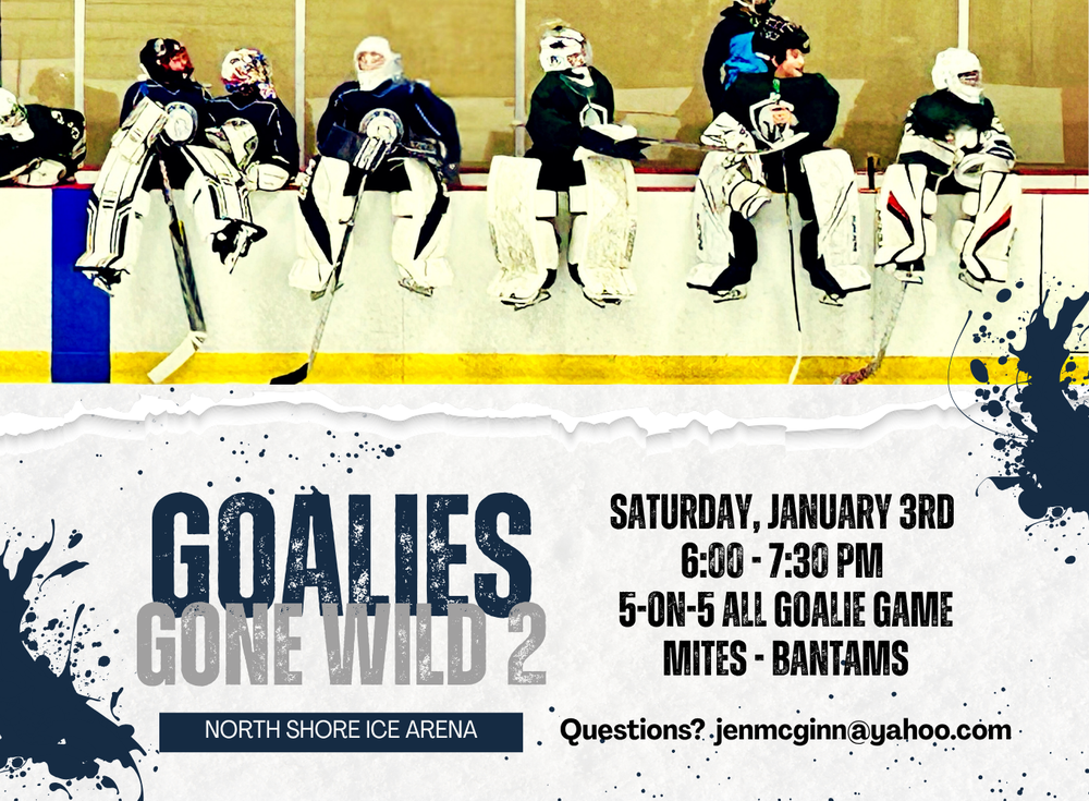 Goalies Gone Wild is back! The second annual 5-on-5 all-goalie game will take place on January 3 at 6 pm at NSIA. Let’s pack the stands - come out to support your tendys!