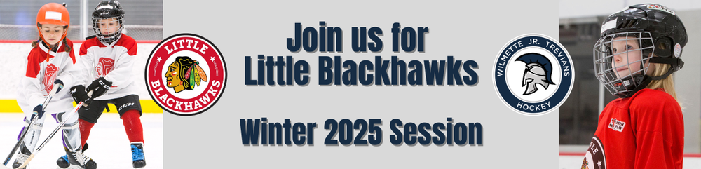 The Wilmette Jr. Trevians are excited to be partnering again with the Chicago Blackhawks to host a Little Blackhawks Learn to Play program this winter at Centennial Ice Rink. It will run on Sundays, January 12 through February 23, 10:40-11:40 a.m.